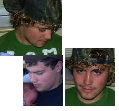 - "Posing" in green shirt... Sis poses in blue shirt photo but he doesn't.. doesn't even look up.